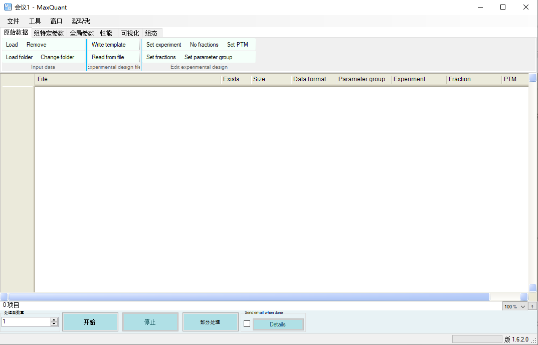1、打开MaxQuant软件,启动以后进入分析界面,