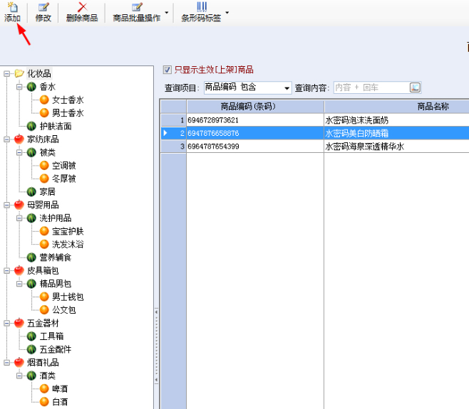 2、点击添加按钮来进行商品的添加,