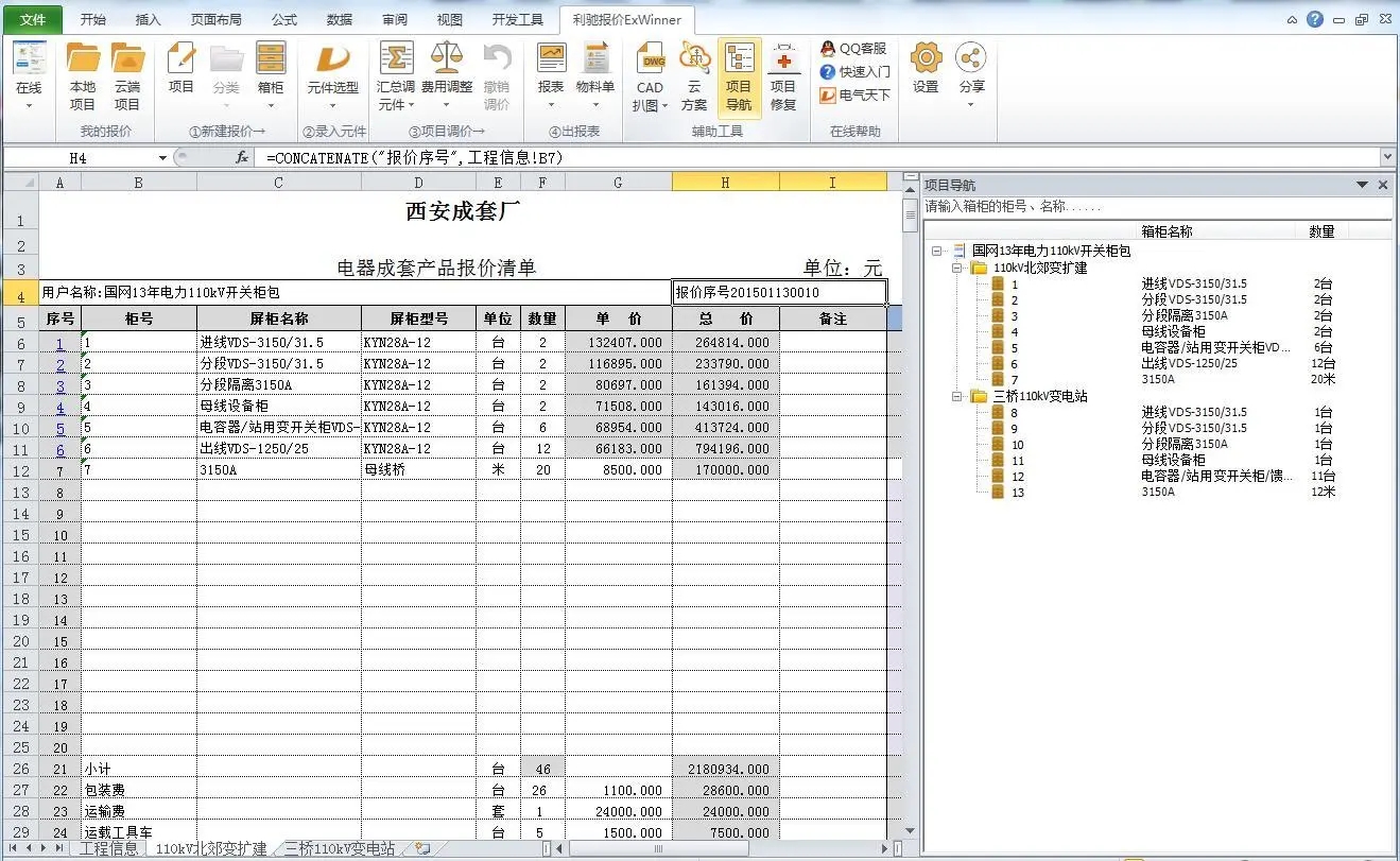 云方案套用、元件联想录入、一键报表、操作沿袭Excel习惯、助您快速报价。