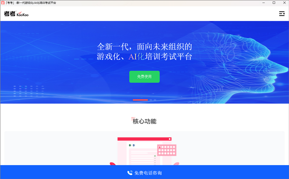 考考在线答题系统是由考考kaokao官方出品的一款免费易用的在线考试即现场互动答题软件,不仅可以用于选拔考试、业务考核、自测练习、答题活动等测试环节,还可以用来公司年会、大型活动、知识竞技、现场选拔等线下互动,这里的题库批量导入,省去录题烦心,而且题型多样,覆盖全面,用户下载之后可以用手机扫码直接登陆,还可以在该平台在线出题,并建立一个题库,还能够设置答题的时间、题目数量,同时软件还拥有数据查看功能,是一款很不错的多场景多功能的出题答题工具。还在等什么,欢迎有需要的用户免费下载使用。