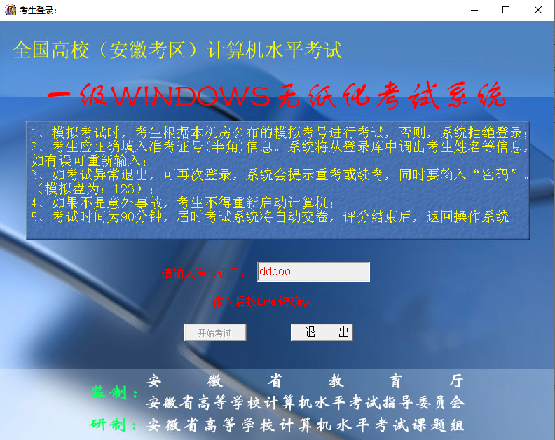 1、模拟考试时,考生根据本机房公布的模拟考号进行考试,否则系统拒绝登录。