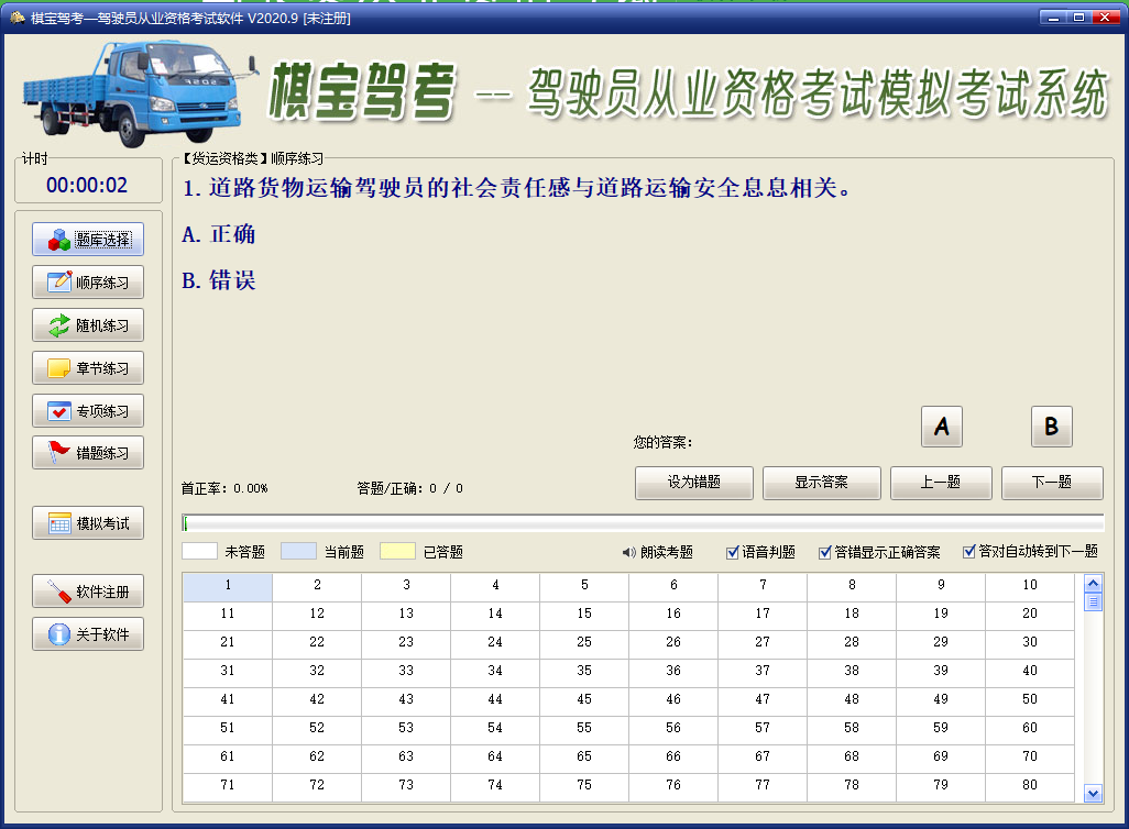 未注册只能看顺序练习的前80题,已付费注册版本没有任何功能限制,可以练习所有题目和使用软件中所有功能