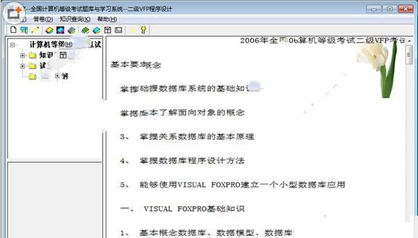 计算机二级考试vfp题库是基于全国计算机等级考试二级vfp大纲而开发的一款模拟考试软件,该软件具有自动计时、随机抽题、全真模拟、精选习题、详尽解析等功能,精选了近两年全国计算机等级考试试题,包括500余道VFP笔试试题和30道上机试题,能够适合参加全国计算机等级考试人员和所有学习程序设计基础理论及Visual FoxPro数据库程序设计的人员使用。