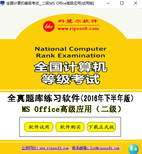 软件中包含近年历次考试真题,适合参加全国计算机等级考试人员和所有学习计算机基础操作、MS Office及上网的人员使用。