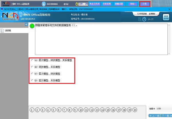 5、即可开始答题,答题完成后选择上方交卷码即可。