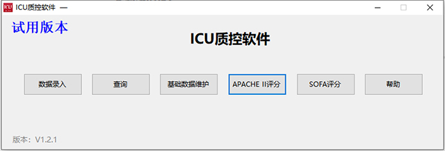 6、功能区:可以进行修改、删除、备份及恢复数据库、导入、导出到EXCEL、打印APACHE II评分表等功能。