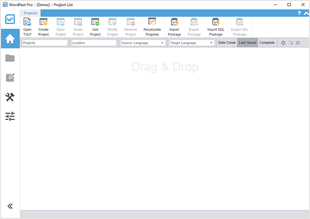 Wordfast Pro 5支持一系列文件格式,包括Microsoft Office,Adobe InDesign,Frame Maker,PDF,HTML,XML,XLIFF等等,未来还会支持更多文件格式。用户将文件拖拽至Wordfast Pro 5的界面就能直接创建一个简单的翻译项目,立即开始翻译。