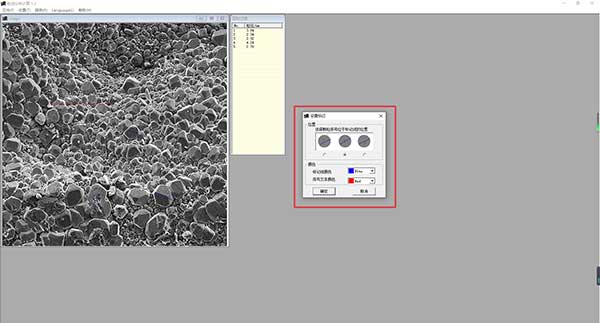 6、测量粒径中,可以点击菜单“设置-标记”,选择颗粒序号在标记线的合适位置和颜色。