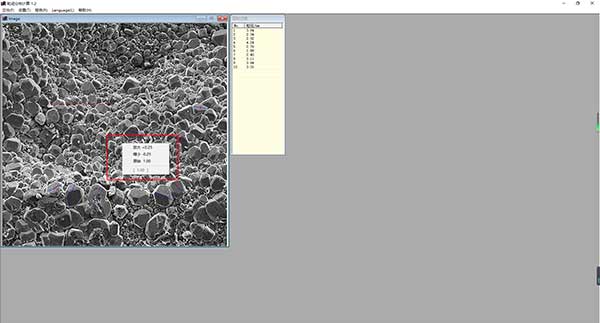 5、拖动鼠标在图中标示多个,程序会记录其序号和粒径,结果会在“即时报告”窗口中显示。对于效果不理想的颗粒,可将鼠标放在图片的颗粒序号上,单击鼠标右键删除,或在"即时记录"窗口中选择某个颗粒序号,单击鼠标右键删除。