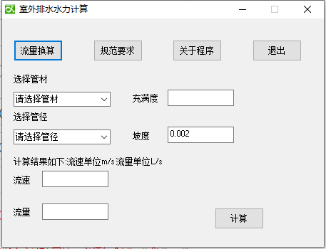 用于国内不同城市的暴雨强度计算、目前已集成了国内各省市的一些较大城市的数据资料,可进行屋面(单雨水斗系统)、室外雨水流量、流速、管径的计算。