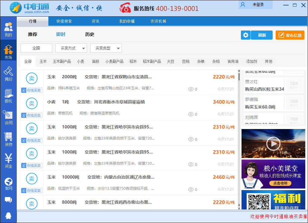 中时通电脑版是中国大宗粮油行业独有的集供求信息发布、信息查询、在线买卖结算、顾问客服协助、行情资讯浏览为一体的综合性服务平台。