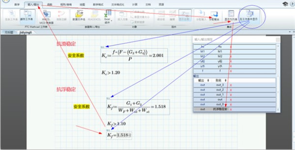 如下:首先选中输入/输出参数公式,然后点击菜单上的输入/输出,根据输入还是输出,点击按钮输入分配/输出分配,显示为列表,修改别名,比如修改某个输出为“抗浮安全系数”