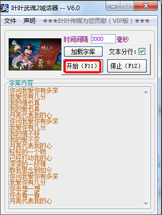 叶叶武魂2自动喊话器是一款专门针对同名游戏而提供的游戏辅助工具,能够有效的帮助用户自动在游戏中进行喊话的操作,节省了游戏玩家自动打字的烦恼!其次,作为一个职业玩家,特别是职业商人,没有自动喊话工具简直就是侮辱,所以,需要的朋友赶紧下载体验吧!