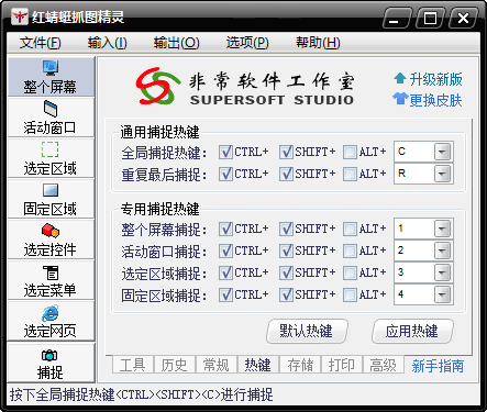 1、具有多种捕捉方式,分别是整个屏幕、活动窗口、选定区域、固定区域、选定控件、选定菜单、选定网页。