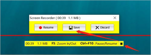 6、视频录制好后,再点击黄框最右侧的黑色按钮位置,再弹出的框里点击【save】即可保存录制的视频;