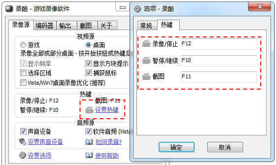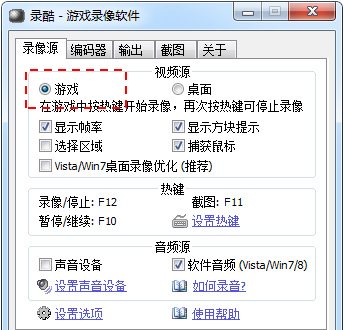 3、当需要录像时,在游戏中按下“录像热键”(默认为F12,可以点击“设置热键”链接来设置)即开始录像