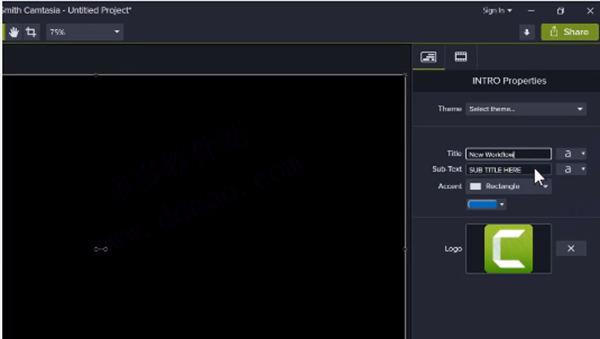 通过使用“ 属性”面板中的“ 快速属性”,自定义模板中的INTRO和OUTRO 。更改文本字段,颜色和徽标。