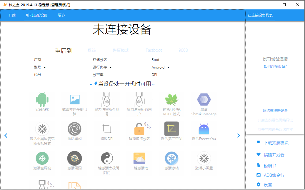 秋之盒官方版是一款开源简约、免费且功能强大的adb刷机工具,软件的界面简洁明了,操作简单易懂,用户可以完成安装ROM、备份和恢复数据等各种刷机任务,即使是小白也能够轻松上手,而对于老鸟来说,秋之盒提供了更多高级功能和选项,可以满足他们更复杂的刷机需求。