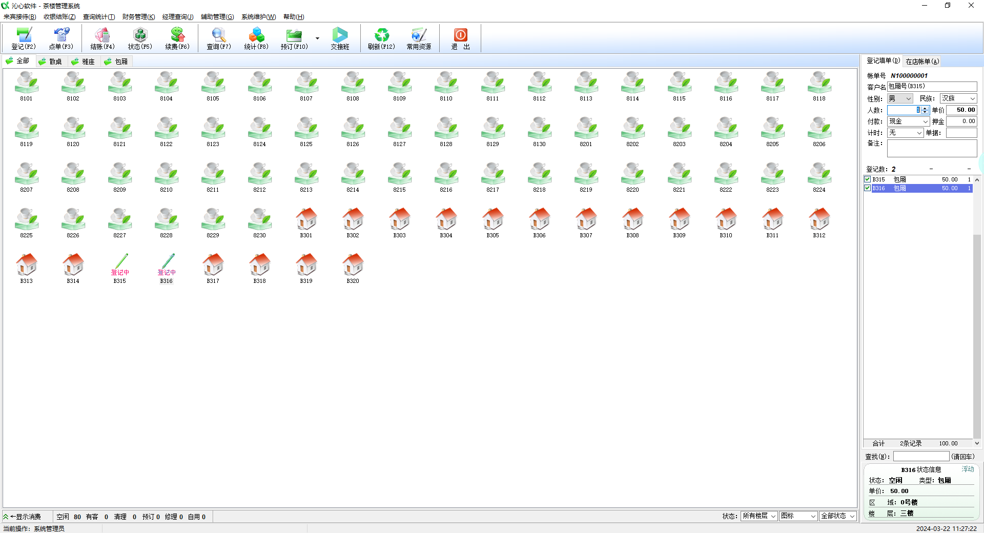 5、基础数据(房号、牌号、包厢号、消费项目名称价格)设置简洁方便。