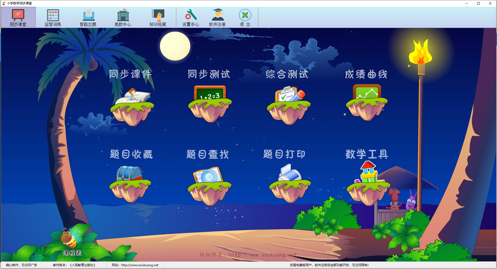 同步课件同步测试、综合测试、成绩曲线、题目收藏、题目查找、题目打印、数学工具。