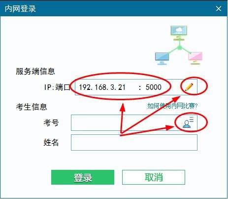 8、在内网登录的界面中,输入刚才第3步中的服务端IP,点右侧笔状按钮可以编辑。