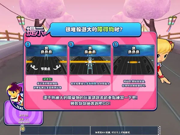什么时候按键呢?音游当然要的是“恰到好处”,所以,在俩节奏点刚好相撞的时候按吧!换作角色而言,就是障碍物到跟前,碰到角色的那一瞬间按,是最好的。