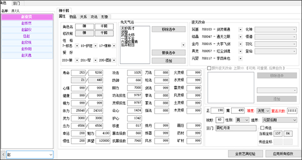 鬼谷八荒存档修改器是由网友昊天开发的一款游戏存档修改器,一般又称为鬼谷八荒昊天修改器、鬼谷八荒昊天存档修改器,允许用户直接导入个人的游戏存档,并进行全方位的编辑,可以完美的帮助玩家任意修改游戏存档档案数值,或是直接更改游戏的属性、道具等数值,支持调整游戏内的各种元素,包括角色属性、人物关系、武学技能、装备道具、角色外观以及所属门派等,从而实现个性化的定制体验,快下载收藏吧。ps:追加了创世存档修改器,总共2款存档修改器哟。