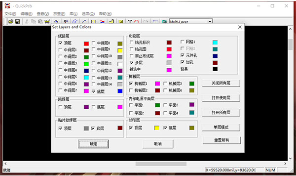 6、层设置功能,在软件界面设置线路层,可以设置具体的颜色,可以设置阻焊层