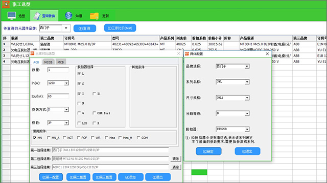 3. 支持产品附件的组合选型(如SIEMENS产品),特有的附件安装冲突检测,避免错选并可降低。