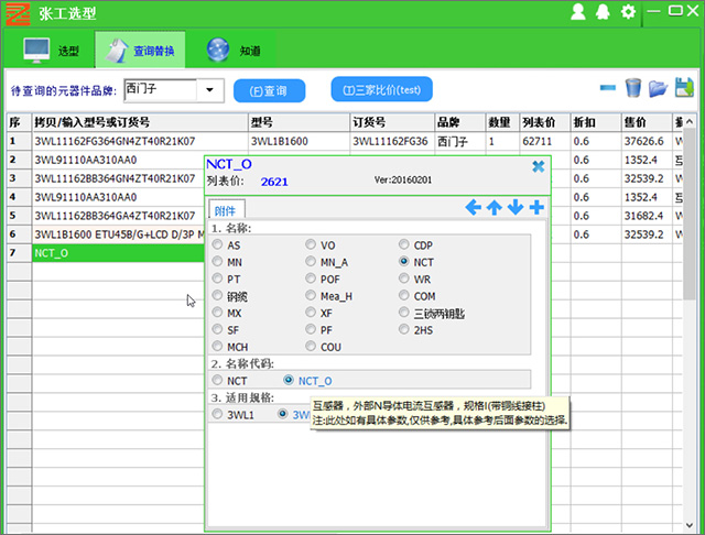 2、支持对设计院图纸或客户提供中的不规则或不标准的型号查询(智能模糊查询功能)。