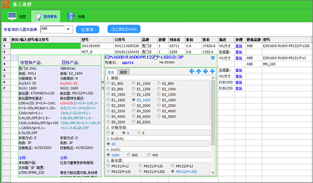 2、待替换产品和目标替换产品的主要特性参数一目了然,清晰对应,随时调整。