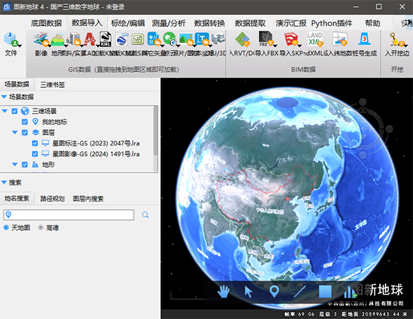LocaSpaceViewer简称LSV,又名图新地球电脑版,这是由苏州中科图新网络科技有限公司出品的一款方便实用,功能专业的三维数字地球软件,其中集成了多种在线地图资源,包括Google Earth影像、Google Earth地形、百度地图、天地图地图、微软地图、影像、标注等等,并更是拥有三维地形无水印、无偏移、无限制下载、Google Earth卫星影像等功能服务,非常的强大。此外,软件拥有丰富的地图资源,可毫不夸张的说有了这款软件可以帮助用户查看地球上任何一个角落的卫星地图,同时不仅允许用户在这里随意加载以及进行无缝的地图切换,还支持倾斜摄影数据极速浏览,并支持倾斜摄影三维模型格式包括*.osgb、*.dae等,从而可以很好的满足用户们的各种使用需求。另外,全新的图新地球电脑版更是提供了多种类型标绘功能可随意的对地球中的任意地点进行量测和空间分析,总之图新地球软件是一个集多在线地图资源查看、影像、地形数据快速下载、倾斜数据极速浏览、模型数据多样展示、便捷的操作分析等优点于一身的轻量级软件,那么如有需求的用户可自行下载体验。