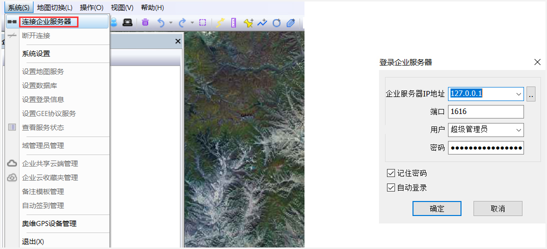 ①在管理控制台,点击[系统]→【连接企业服务器】,输入企业服务器IP地址等,点击【登录】,即可。