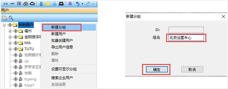 创建用户分组,目的在于方便管理员对企业用户进行管理。管理员可以按职能部门、项目组等对用户进行分组。