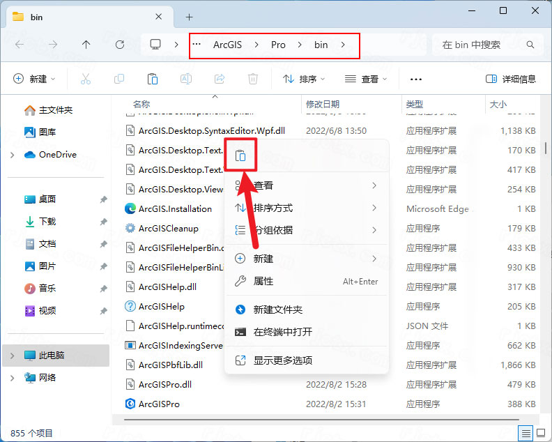 软件安装目录:找到【ArcGIS Pro软件图标】点击【打开文件所在的位置】