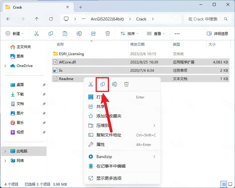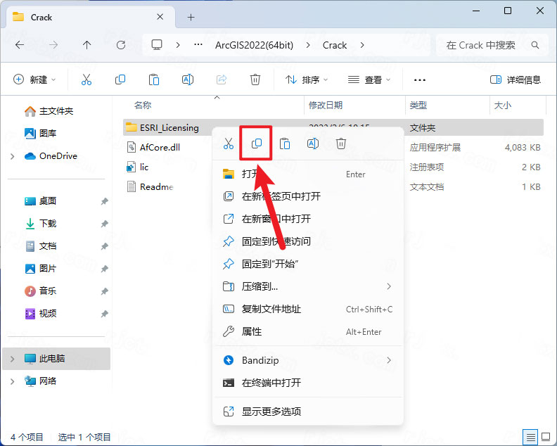 25、回到安装包解压后的【Crack】文件夹,鼠标右击【ESR_Licensing】选择【复制】