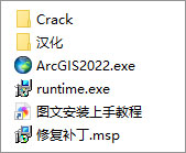 1、下载解压,得到esri arcgis pro 2022原程序,汉化包以及crack激活文件;