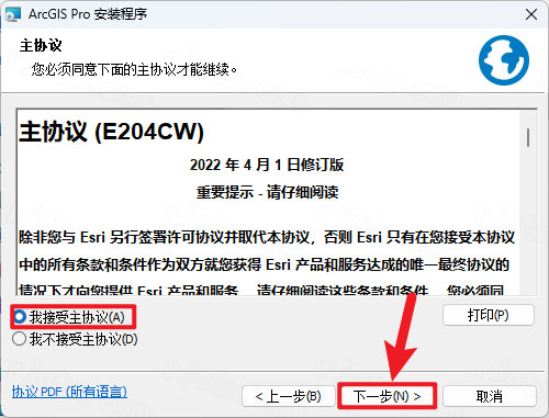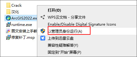 4、成功安装组件后,回到文件夹,找到【ArcGIS2022.exe】应用程序,右键选择【以管理员身份运行】建议按默认目录安装;