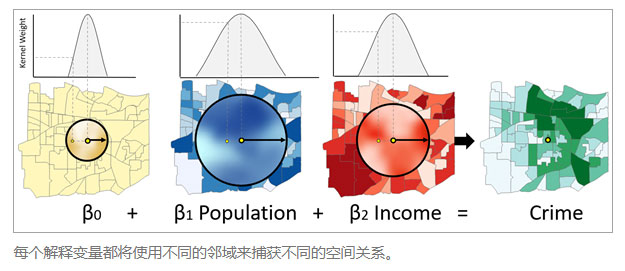 多尺度地理加权回归 (MGWR) 工具用于执行局部线性回归,其中系数值可能跨空间变化。 MGWR 扩展了地理加权回归 (GWR) 以对每个解释变量使用不同的邻域,从而允许模型捕获解释变量和因变量之间的不同比例的关系。