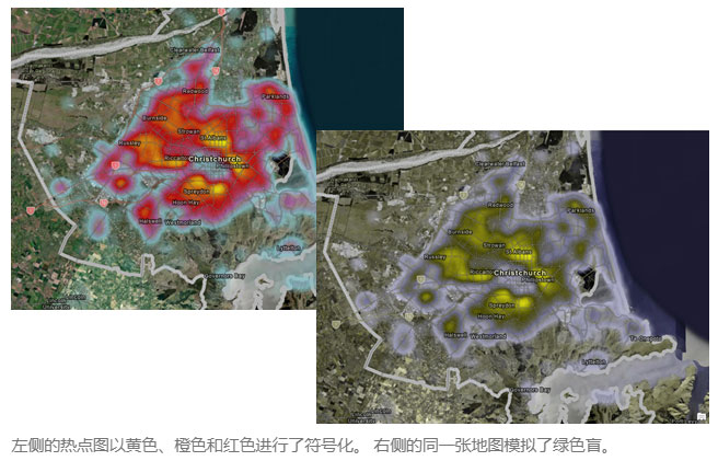 色觉缺陷模拟器工具可以在以下三种色觉缺陷模式下模拟地图、布局或报表:红色盲(红色盲的一种)、绿色盲(绿色盲的一种)和蓝色盲(蓝色盲的一种)。 一次只能应用一个模式。 每种模式都会转换视图的内容,使其外观与有色觉缺陷的人所看到的内容相同。 可以在地图、布局和报表的视图选项卡上使用色觉缺陷模拟模式。