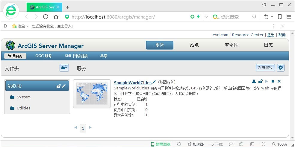 ArcGIS Server Manager 要求安装以下任一类型的 web 浏览器: