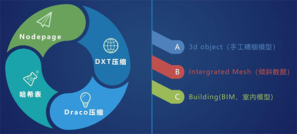 对I3S 1.7版本进行了全面支持,支持3d object类型的i3S(主要用于表达离散的模型,最为常见的是手工精细建模模型)、Intergrated mesh类型的i3S(主要用于表达连续的mesh数据,最为常见的是实景三维模型)和Building类型的i3S(主要用于表达BIM)等。