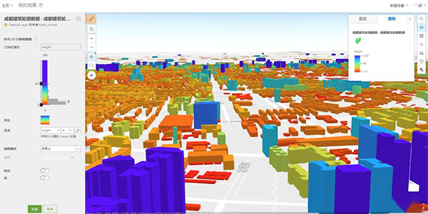 属性驱动的智能制图针对二维要素图层进一步增强,对于缺少三维数据的用户而言可以直接在浏览器端实现二维数据的接地、拉伸(根据属性创建三维效果)并按照一定的业务属性对数据渲染从而增强三维数据的可读性。