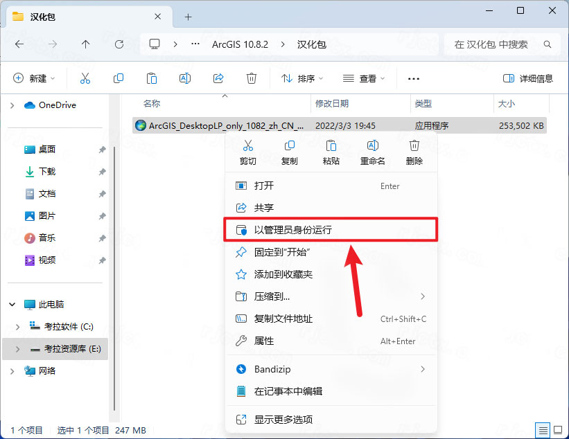 2、打开【Setup】文件夹,右击【ArcGIS_Desktop_1082_180378】 ,选择【以管理员身份运行】