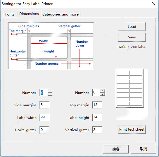 7、灵活强大的设计排版功能。可自定义纸张大小、行列数目、间距、标签尺寸、文本对齐、打印顺序(两个顺序、两个方向)、页码位置、页码样式、打印时间等。