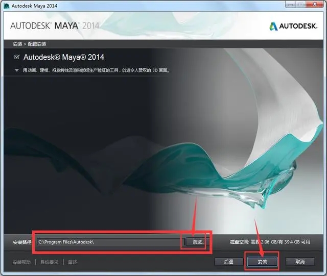 - 安装Autodesk Maya 2014,从本站下载后解压,双击Setup.exe开始安装