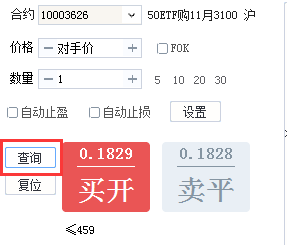 2、点击“复位”按钮 ,可将交易界面的操作恢复为开仓,数量恢复为默认数量,价格恢复为对手价。