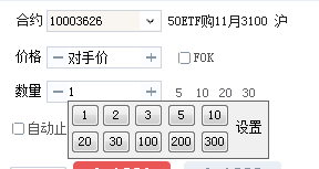 b.连续3次点击合约输入框后面的 按钮,按次序先选择标的证券、再选择标的月份合约、最后选择期权合约。