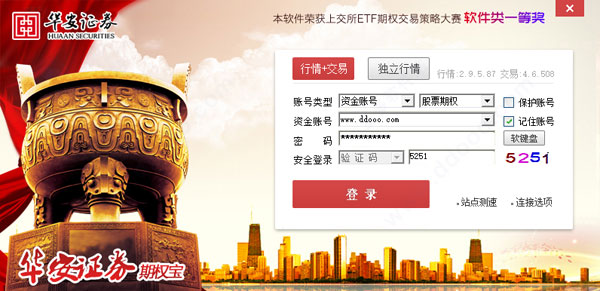 2、成功安装后,支持行情+交易、以及独立行情登陆;