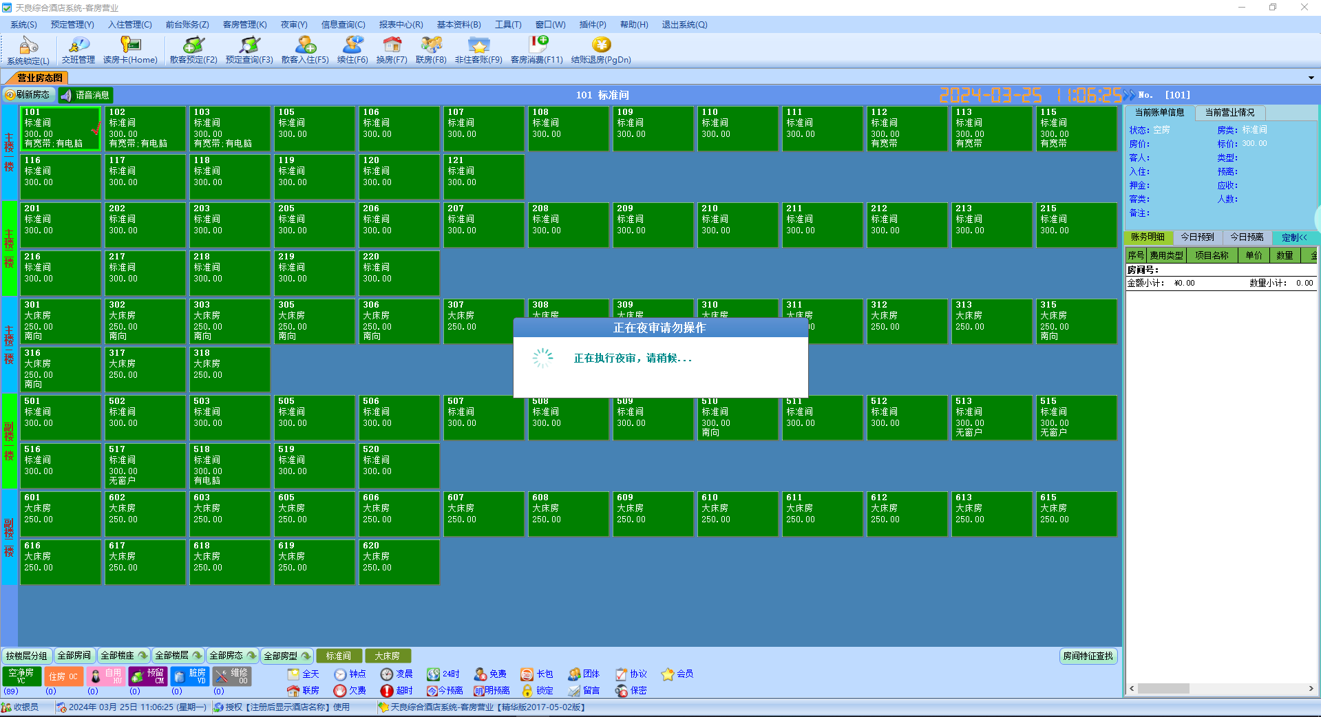 支持自动夜审、手动夜审,自动夜审时按设定数据自动过房租,夜审后禁止修改历史数据,未做夜审时登陆系统后软件自动提示夜审,确保营业数据及时有效。